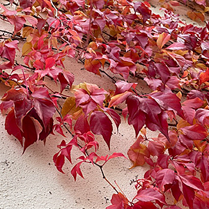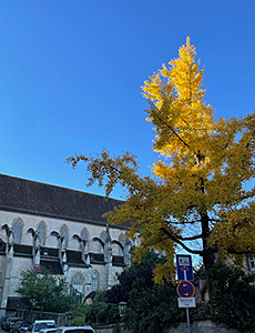 ヤコブ教会裏の立派な銀杏の黄葉とアメリカづた(ドイツ語では"Wilder Wein")の紅葉。