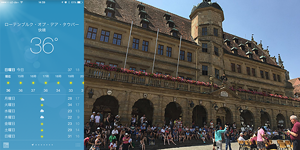 ものすごい暑さでした、、、 さて ではドイツ人のみんなはどのように猛暑をしのいでいるのか? それはドイツ人のイメージ通り やはり「飲むこと!」だったりします。 寒さをしのぐ方法も「飲むこと!」だったりしますが(笑) 猛暑のまっただ中に ローテンブルクの市民祭りも行われました。