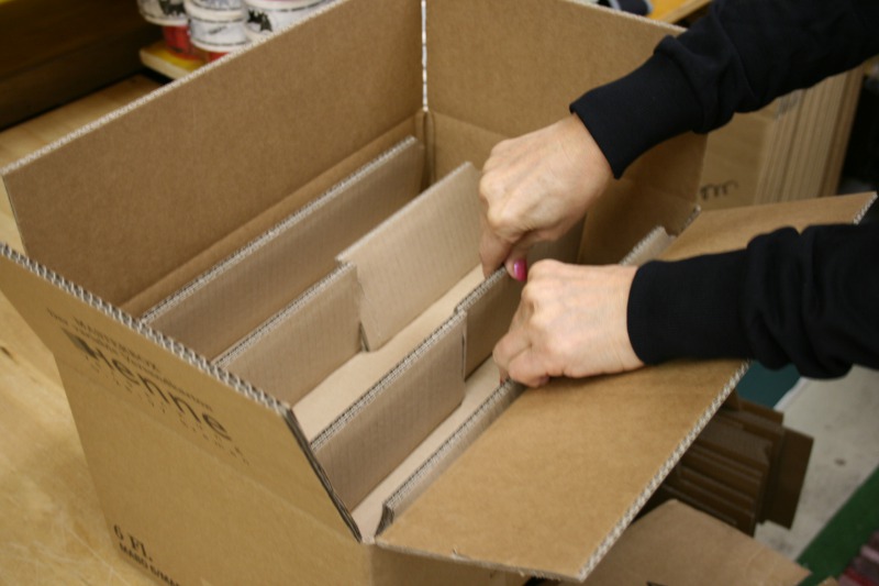 これはフランケンワイン(ボックスボイテル型)の詰め方です。
